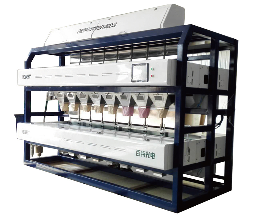 3、高敏感CCD傳感器擁有5340像元和12K掃描速度,配合獨特的掃描方式,讓機器可以選別120目顆粒